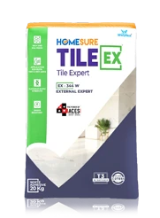 Tile Adhesive is a factory-made, specially formulated dry powder that is mixed with water or polymers to form a consistent paste for problem-free tile installation. In the market, there are innumerable types of tile adhesives that vary in composition and quality due to their ingredients and the manufacturing process. HomeSure TileEx has pioneered Tile-Adhesives in India after extensive R&D, which is the reason why they are superior in quality and performance.